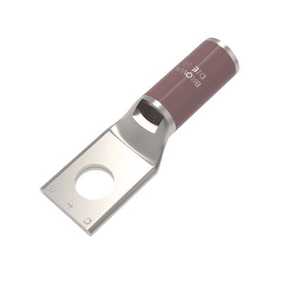 Zapata Terminal de Compresión de Cobre Electrolítico Estañado de Cañón Corto para Tornillo de 1/2″ y Calibre 4 AWG. HUB-YA4-CL6-BOX