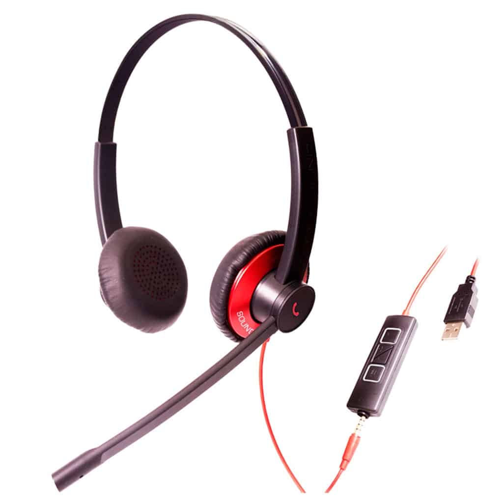 EPIC 502-R, Diadema UC, control llamada, mute y vol, 3.5mm y USB, Rojo (Binaural) EPIC 502-R