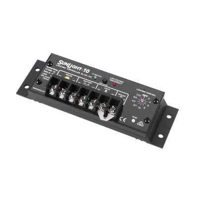 Selector digital para 10 opciones de iluminación. Utiliza el voltaje del módulo solar para determinar día / noche. Opción para conservar la energía solar, encender al anochecer y apagar antes del amanecer. Botón de prueba que enciende por 5 minutos durante el día y confirma una instalación apropiada. Funciones especiales de encendido.
