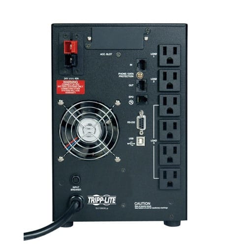 SU1000XLa – UPS SmartOnline en línea de doble conversión de Tripp Lite; protege equipos críticos de servidores, de red y telecomunicaciones de apagones, caídas de voltaje, fluctuaciones de voltaje y sobretensiones transigentes en un atractivo factor de forma de torre vertical totalmente en color negro. UPS de gran capacidad, 1kVA / 800 Watt, convierte continuamente la CA entrante en CD y luego a una salida de CA de onda sinusoidal perfecta de 120V CA (+/-2%). Elimina la distorsión armónica, los impulsos eléctricos rápidos, las fluctuaciones de frecuencia y otros problemas de energía difíciles de resolver que no toman en cuenta otros sistemas UPS. La salida de onda sinusoidal pura y cero tiempo de transferencia a la batería ofrecen compatibilidad garantizada con todo tipo de equipos. Funcionamiento extremadamente eficiente, en la configuración opcional de modo económico, reduciendo la salida de calor y ahorrando en los costos de energía. Incluye 6 tomacorrientes respaldados por el UPS. 2 bancos de carga de con un solo tomacorrientes cada uno se pueden controlar en forma independiente a través de una interfaz de software para que reinicien equipos remotos de manera selectiva o eliminen cargas menos críticas para extender el tiempo de funcionamiento de la batería para equipos vitales. Dispone de tiempo de autonomía extendido con los módulos opcionales de baterías externas BP24V15RT2U, BP24V28-2U y BP24V70-3U. Incluye ranura para opciones de tarjetas internas para administración de red, más puerto de monitoreo serial DB9 mejorado para apagado sin supervisión, control remoto y monitoreo del sistema UPS y datos de la energía. Interfaces de administración de red soportan comunicaciones simultáneas a través de puerto USB, puerto serial DB9 y ranura para opciones de Tarjeta para Administración de Red. La interfaz USB compatible con HID permite la integración con las características incorporadas de administración de energía y apagado automático de Windows y Mac OS X. El software para administración de energía del UPS PowerAlert de Tripp Lite se puede descargar en forma gratuita. Compatible con el Software de Servicio de Monitoreo / Reinicio Watchdog de Tripp Lite.